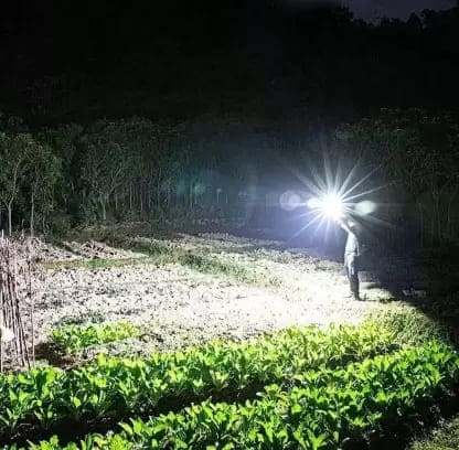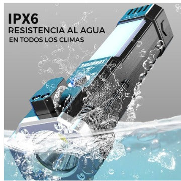 La linterna alcanza hasta 3000 lúmenes, con un alcance de hasta 100 metros, brindando iluminación clara y segura.